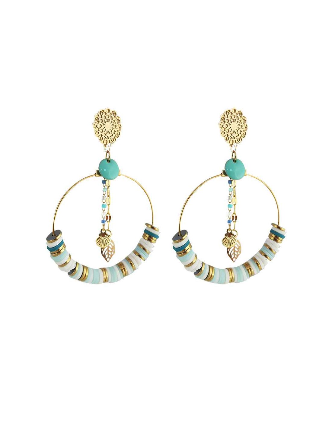 • Pendeloques en forme de coquillage et feuille pour une inspiration naturelle.