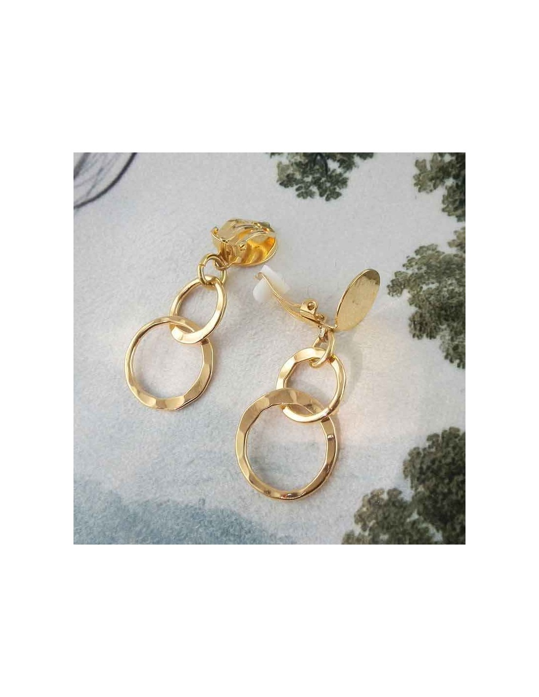 Découvrez ces boucles d’oreilles clips en anneaux martelés plaqués or, alliant style bohème et confort absolu.