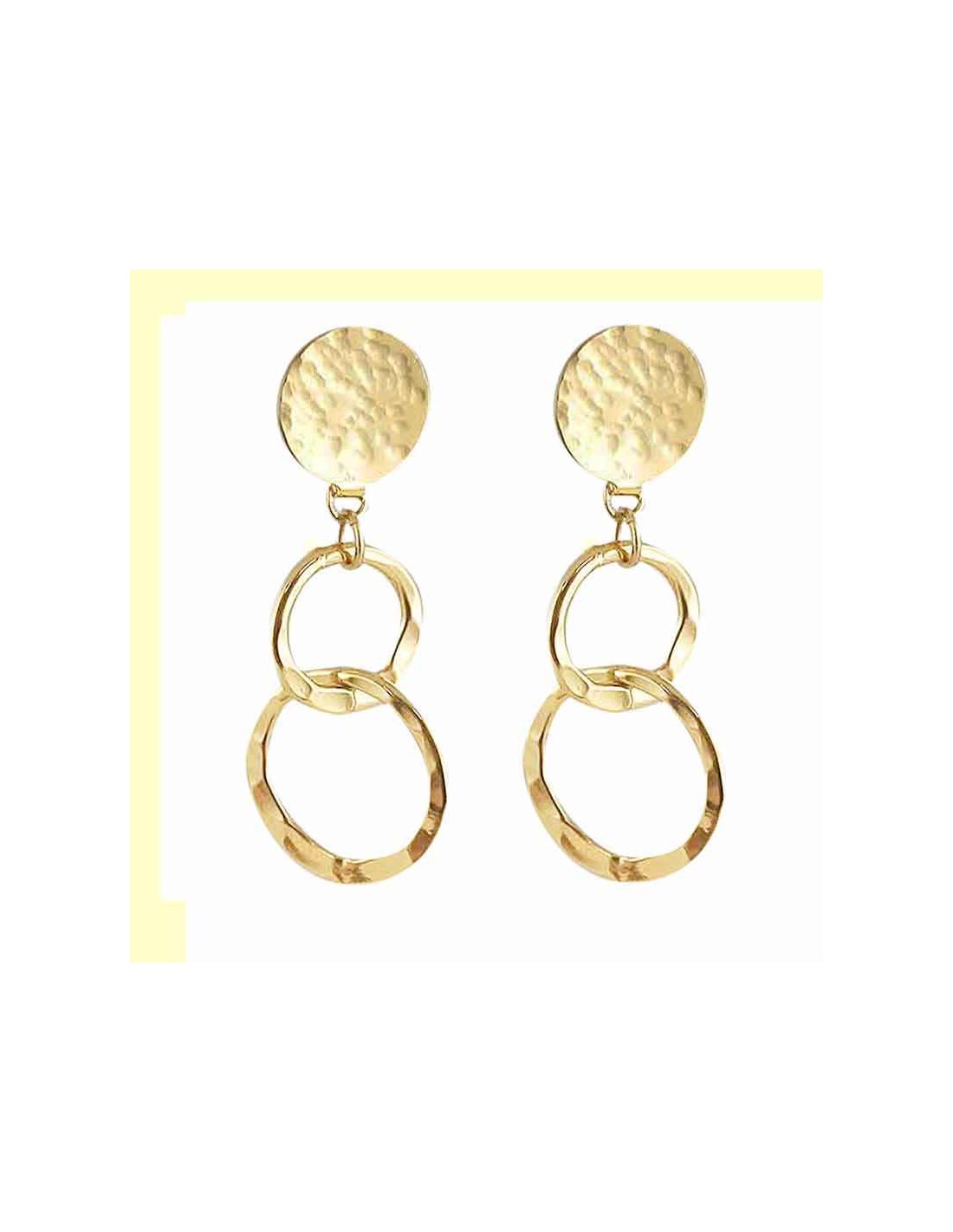 Leur design unique, composé de deux anneaux entrelacés et d’un disque martelé, apporte une touche d’originalité et de raffinement à votre look.