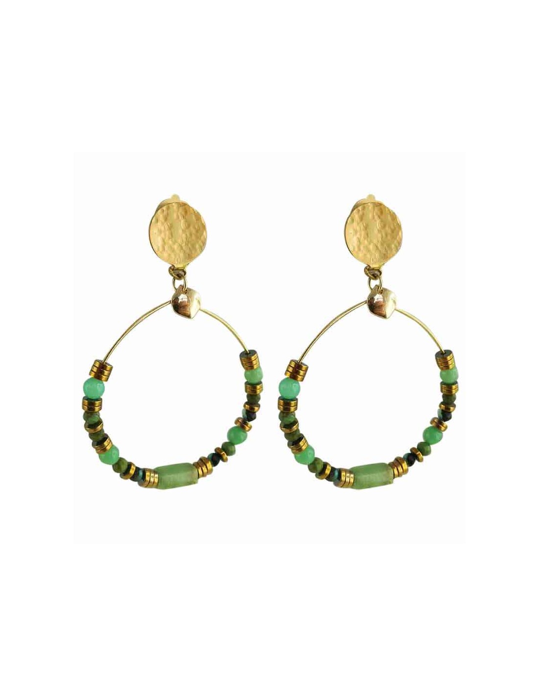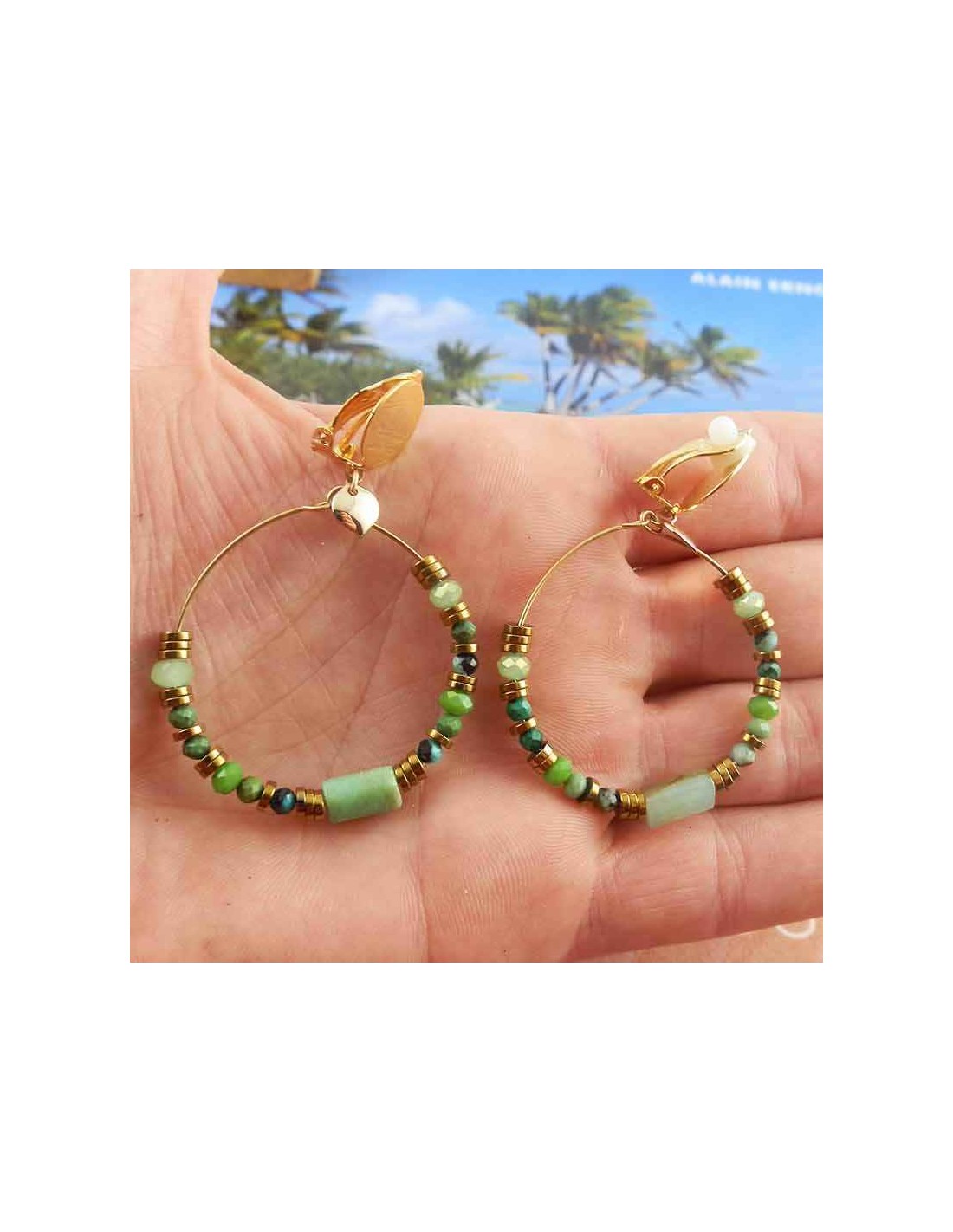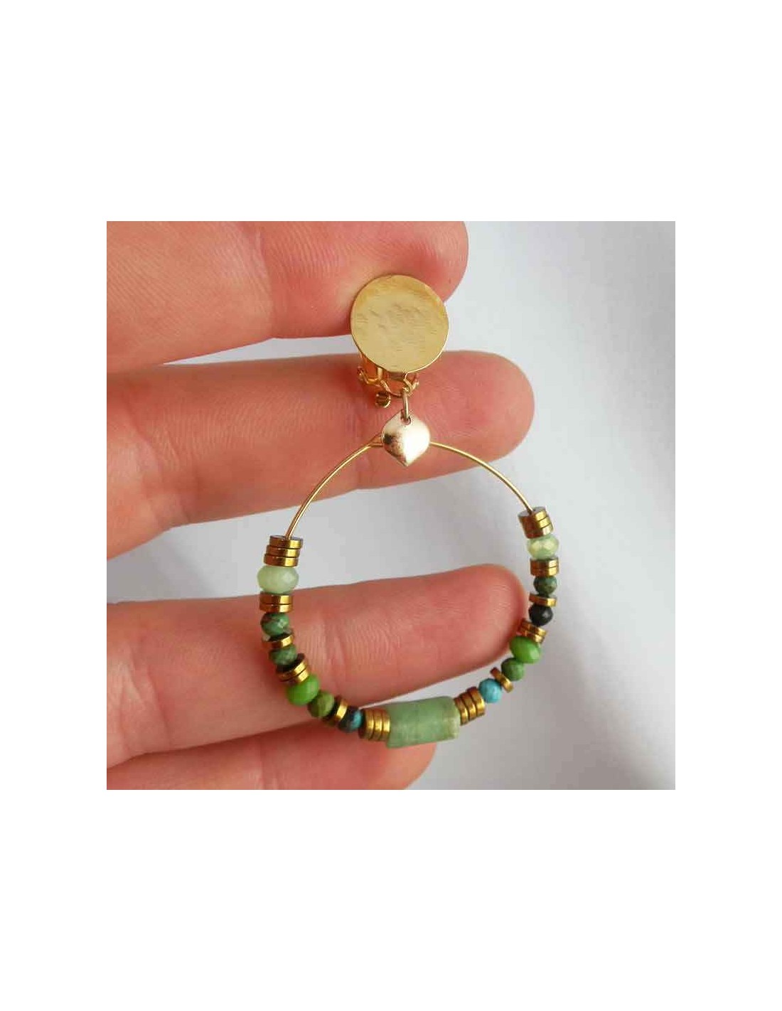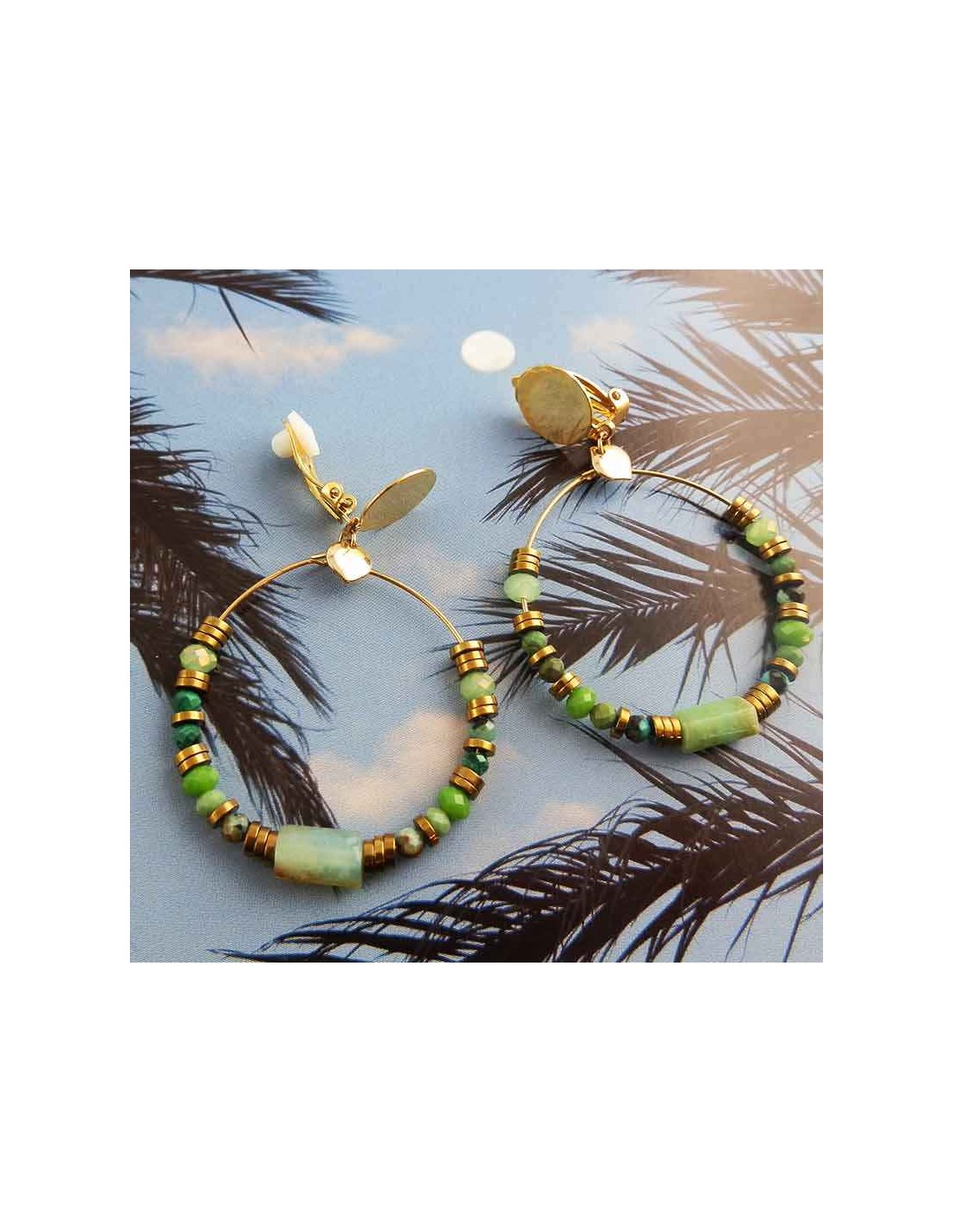 Découvrez nos boucles d’oreilles clips en malachite et calcédoine, un bijou unique qui allie élégance, naturel et confort. Ces boucles d’oreilles à clips créoles sont conçues pour celles qui recherchent un style bohème, raffiné et intemporel.