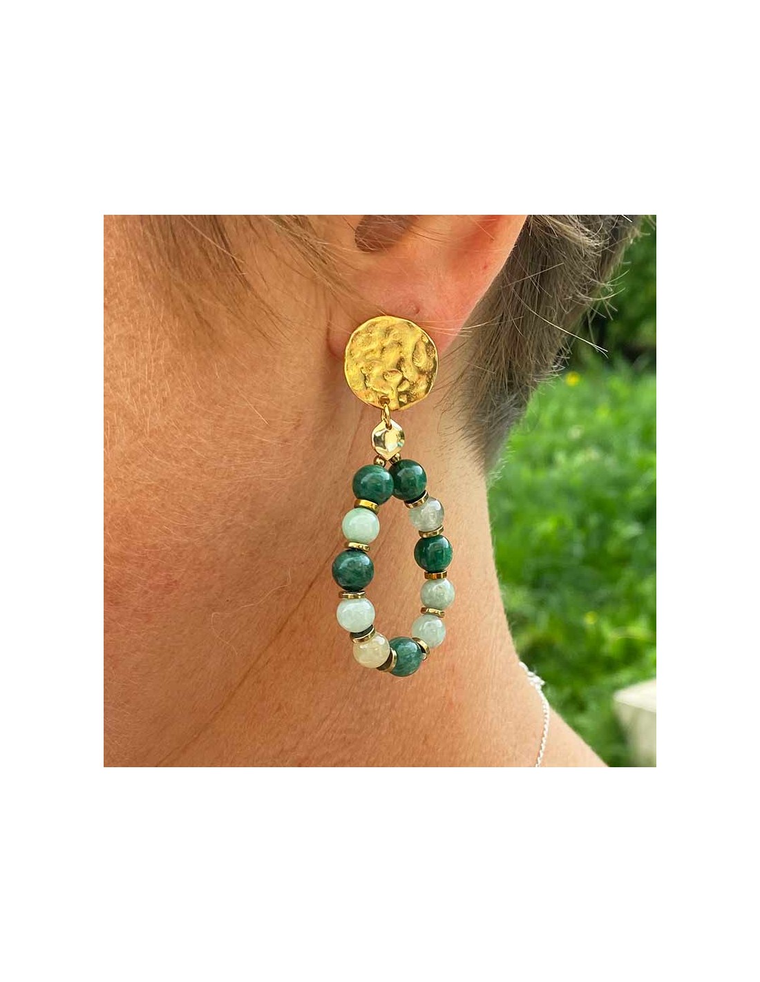Joli boucle d'oreille à clip forme ovale, pierres naturelles, fabriqué dans notre atelier.