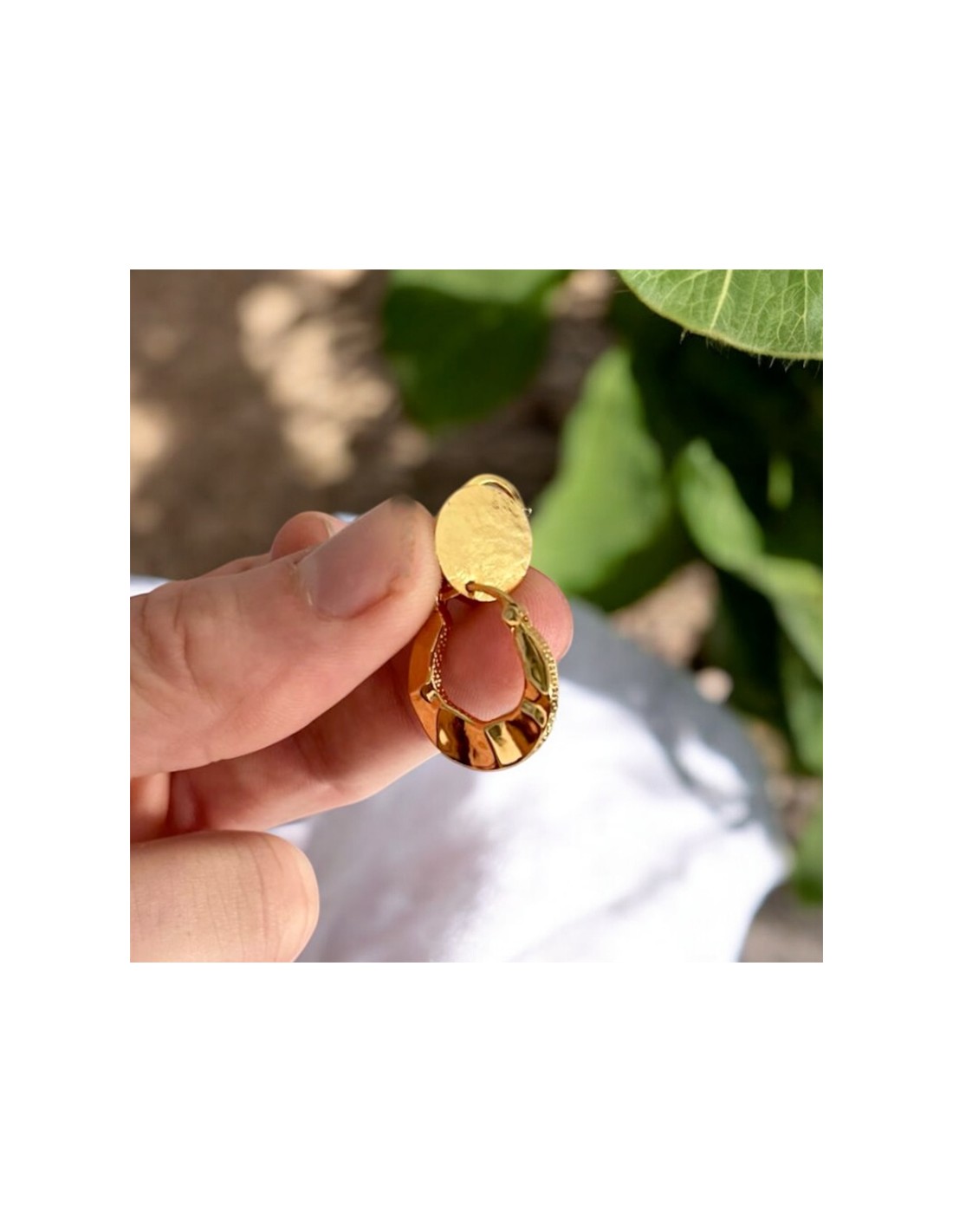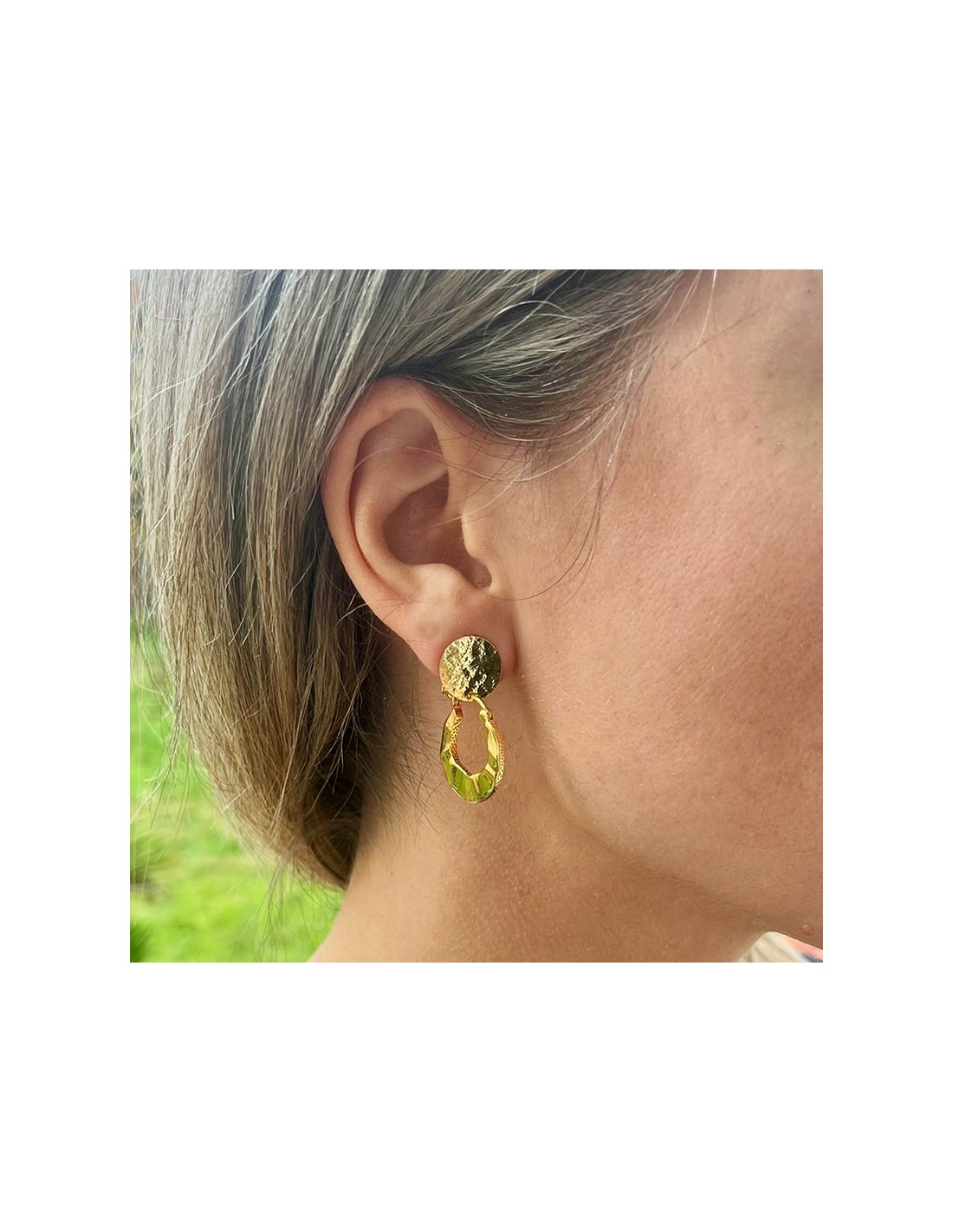 CLIPCHICCes boucles d oreilles clip femme, raffinées ou chaque détail de l' anneau en plaqué or en fait une bijou finement sculpté. Sa finition brillante et ses courbes sont légèrement ondulées. Suspendu a un disque rond martelé, ces boucles d oreilles clips sont légères et faciles a porter.
