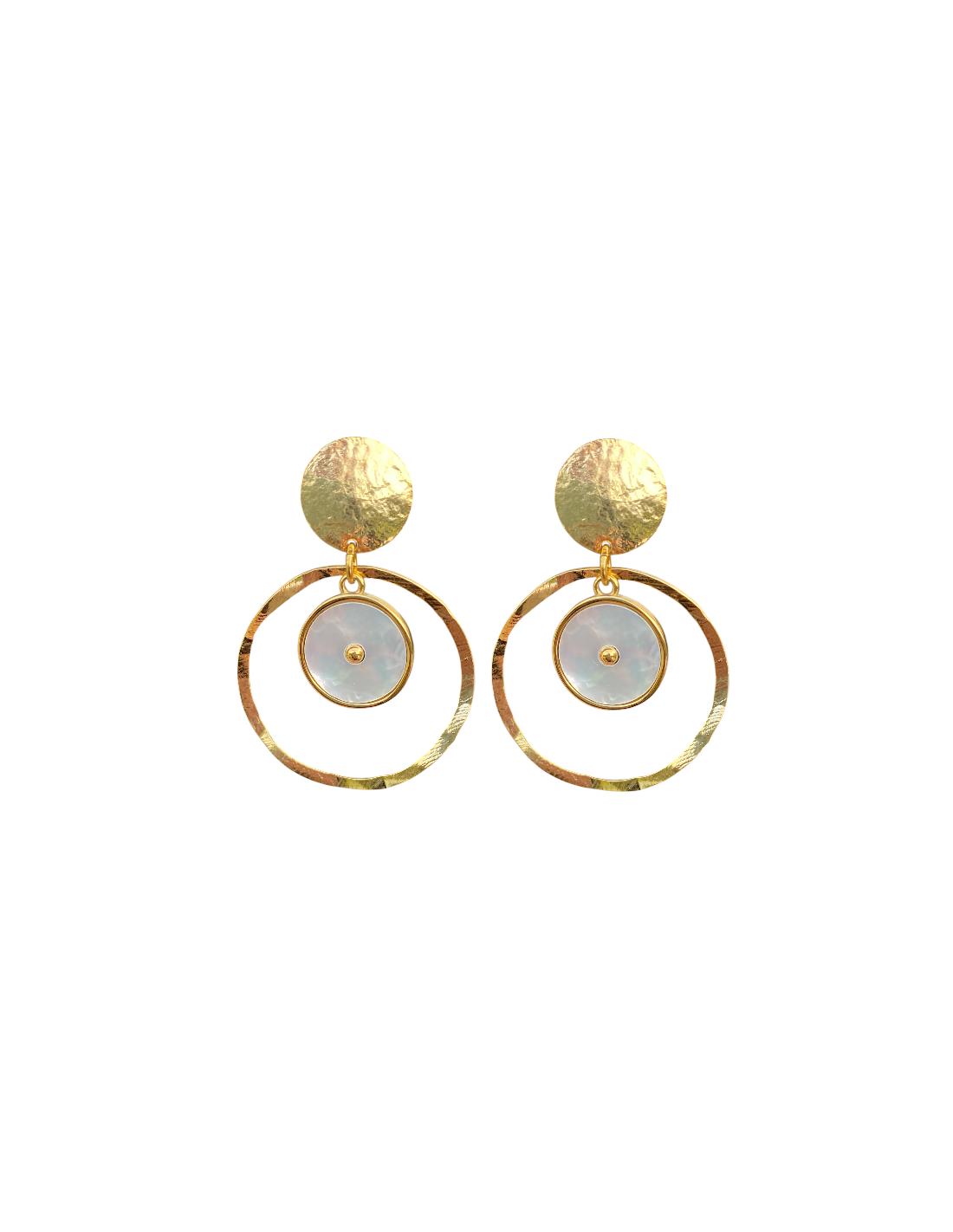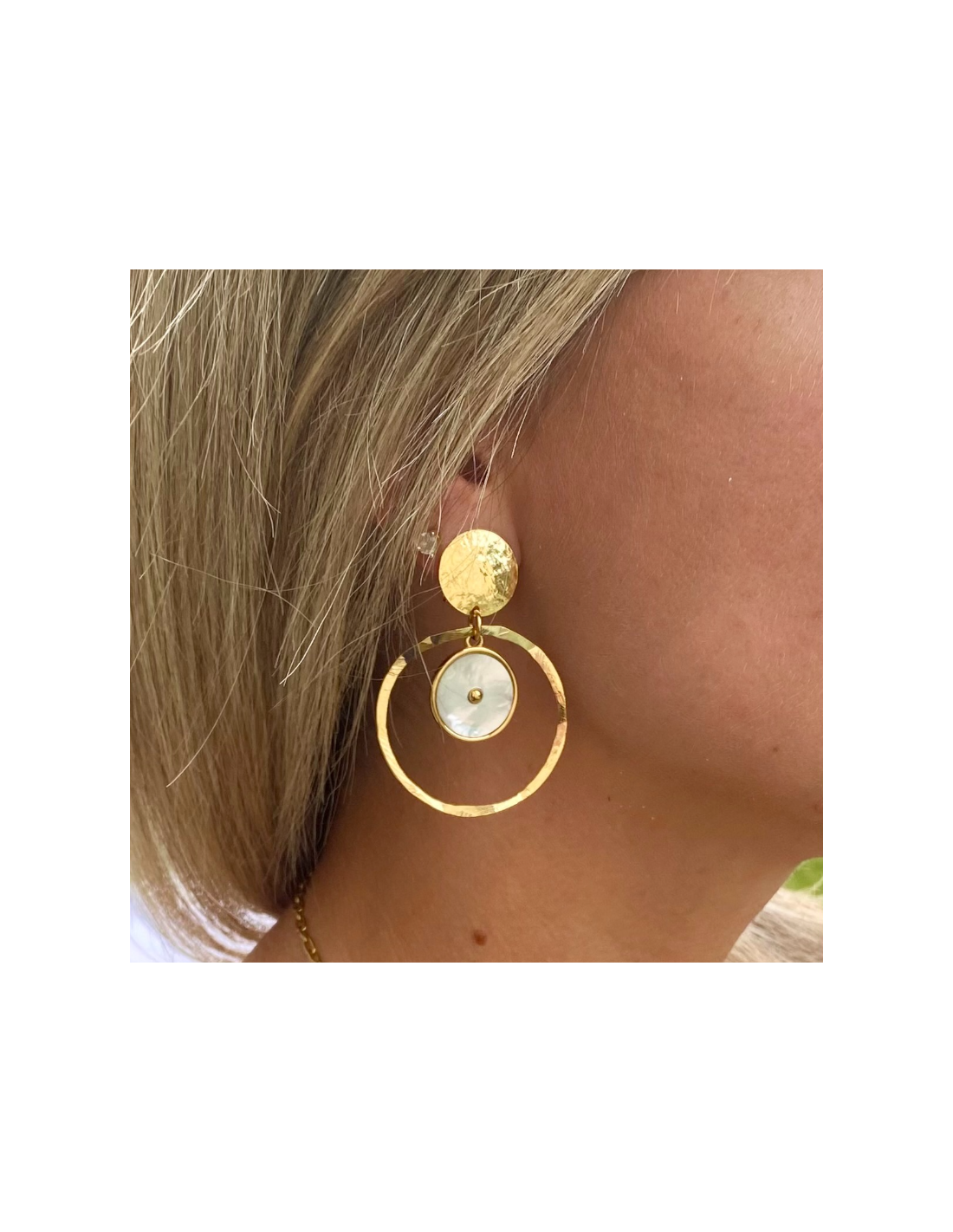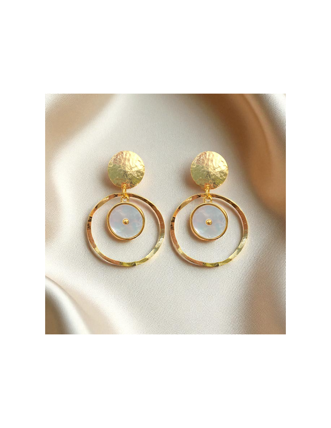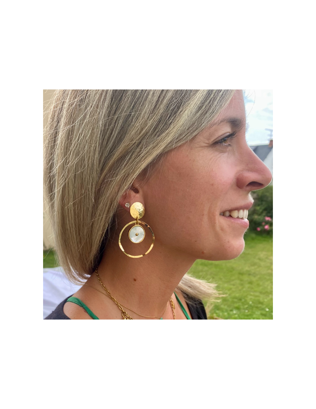 Leur design moderne associe un cercle plaqué or texturé à un médaillon central en nacre naturelle, créant un équilibre parfait !