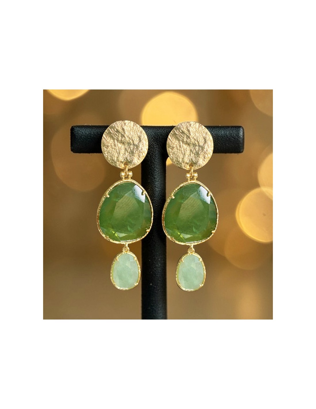 Le contraste des nuances de vert crée un bijou à la fois élégant et original, parfait pour sublimer toutes vos tenues.