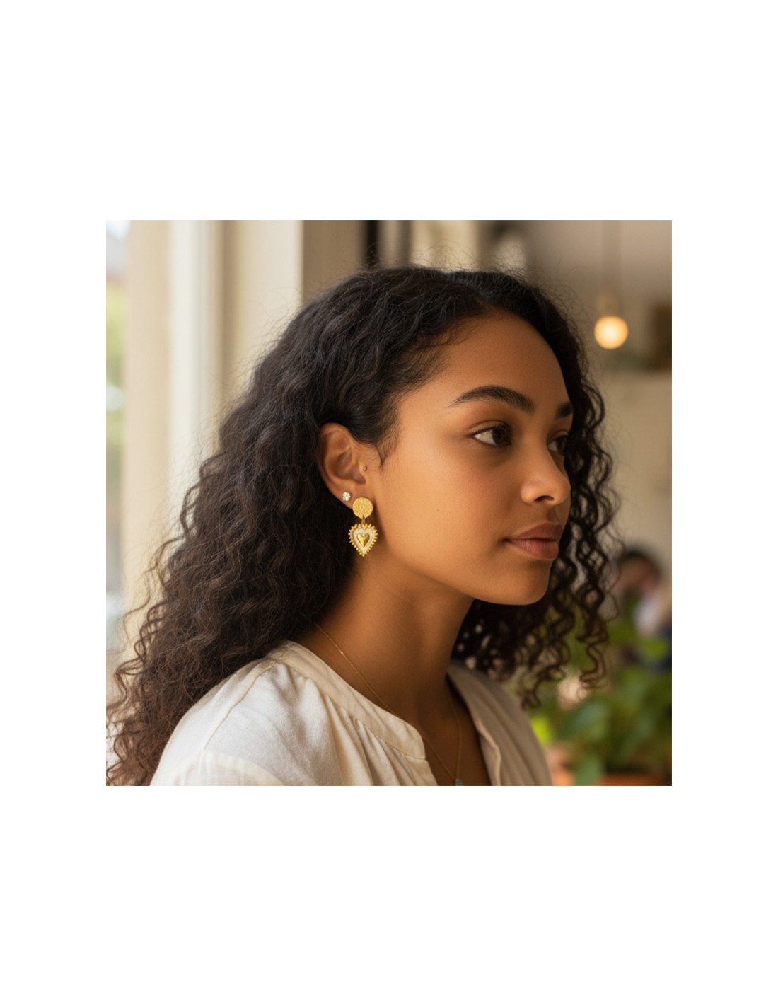 Laissez-vous séduire par ces sublimes boucles d’oreilles à clip en forme de cœur, un bijou qui allie avec grâce la douceur de la nacre et l’éclat du doré. Parfaites pour celles qui recherchent une touche de romantisme.
