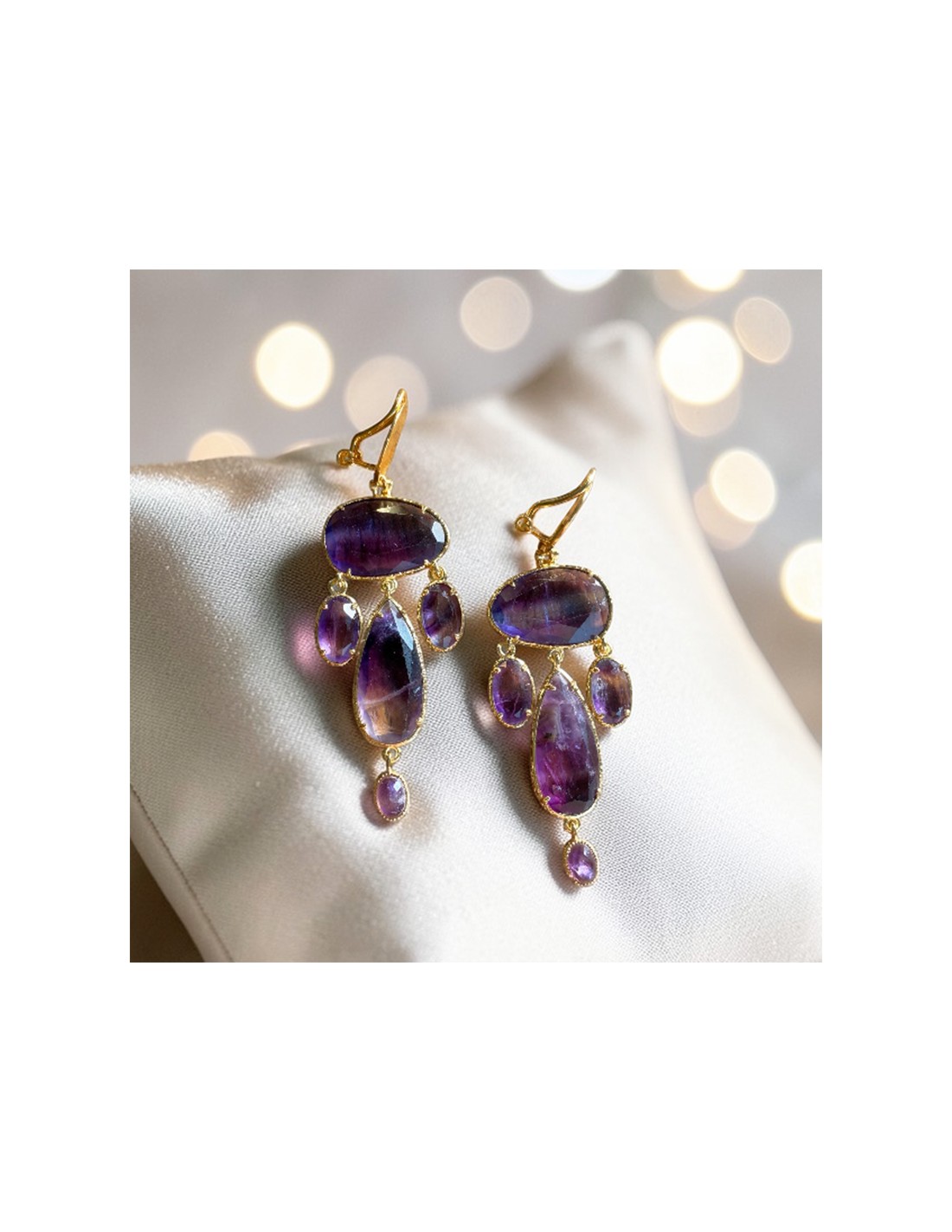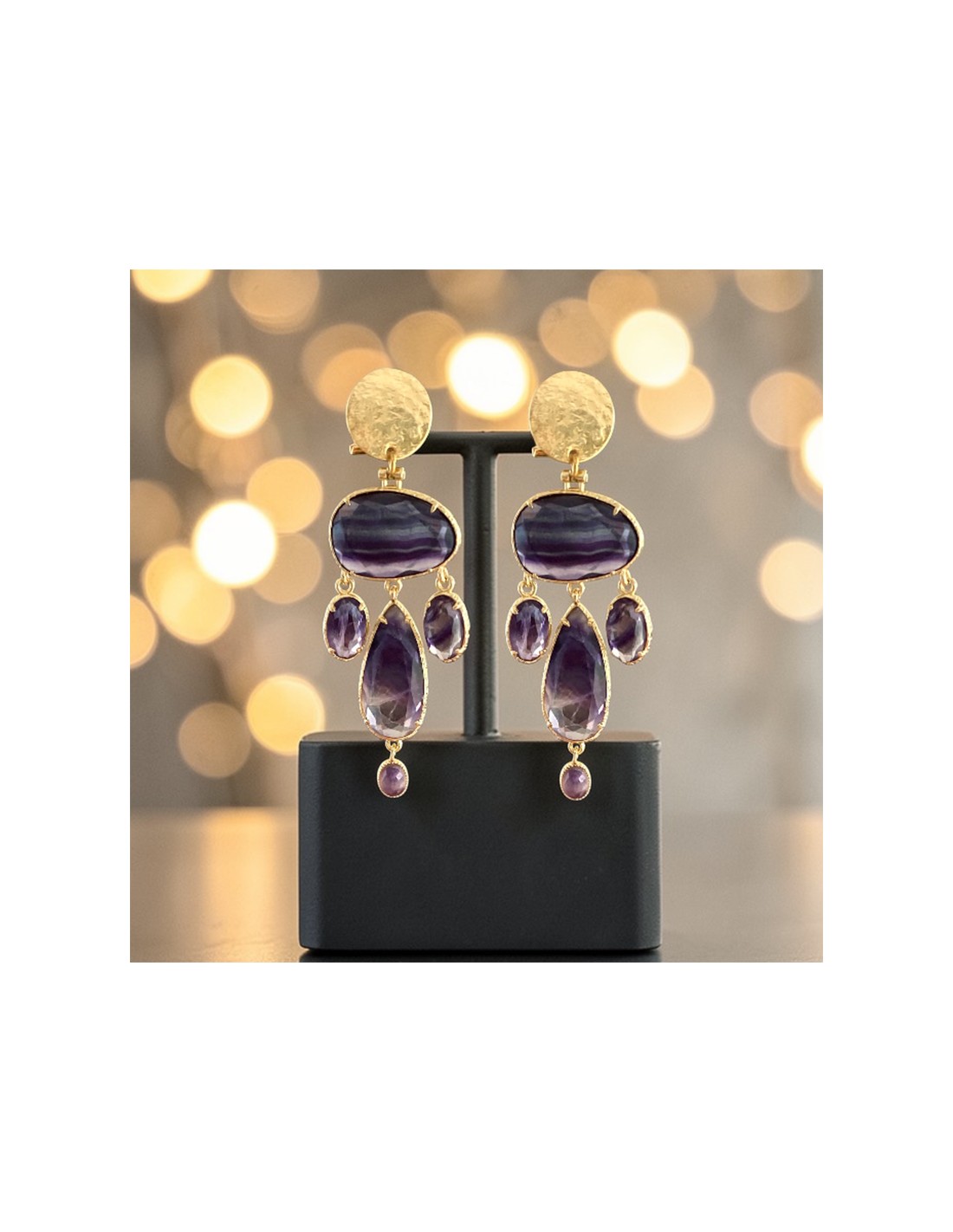Ces boucles d’oreilles clips en améthyste naturelle sont conçues pour celles qui recherchent un bijou à la fois unique, confortable et facile à porter. L’améthyste, pierre semi-précieuse réputée pour ses nuances de violet et ses propriétés apaisantes, est ici mise en valeur par un montage doré à l’or fin, clip en plaqué or légèrement martelé.
