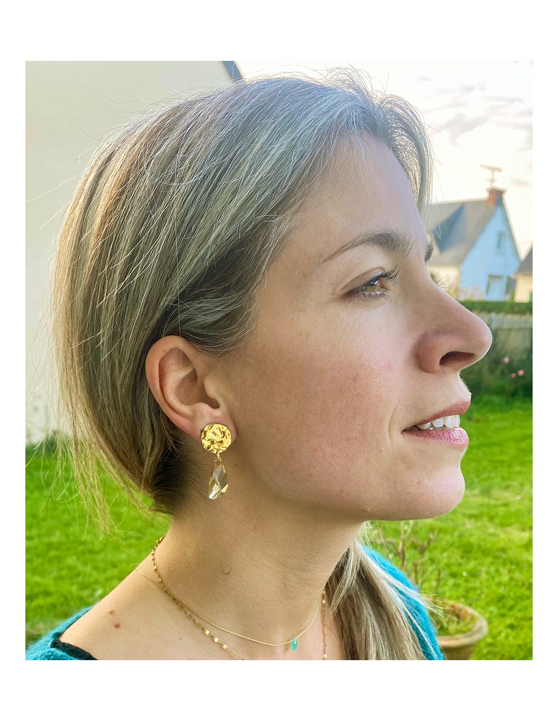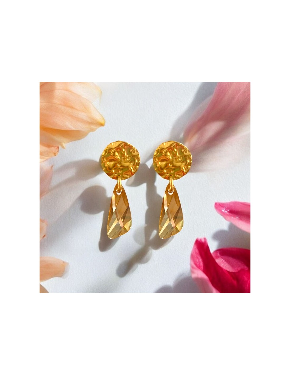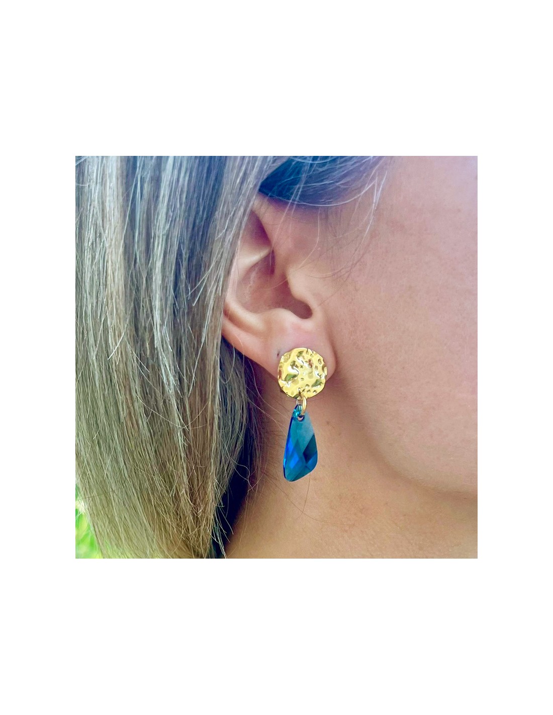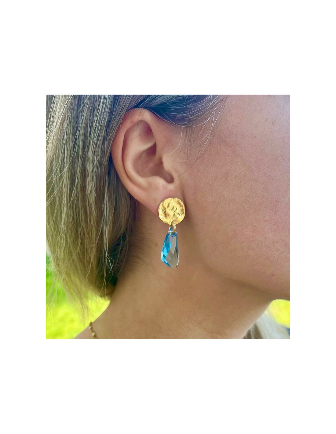 Modèle en cristal Swarovski, coloris Aquamarina, Capri blue, Violet Améthyste ou Beige réhaussé d'un clip en métal doré martelé, création légère, aérienne au coloris lumineux que seul le cristal peut rendre, effet de lumière selon l'éclairage de l'endroit ou vous êtes. Cadeau de qualité et prestigieux., livré dans son écrin.