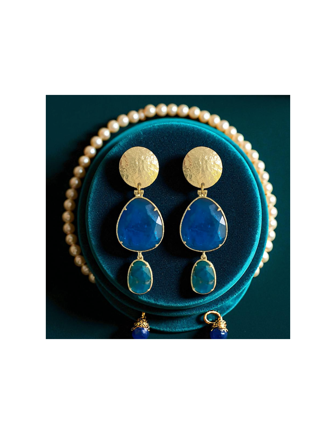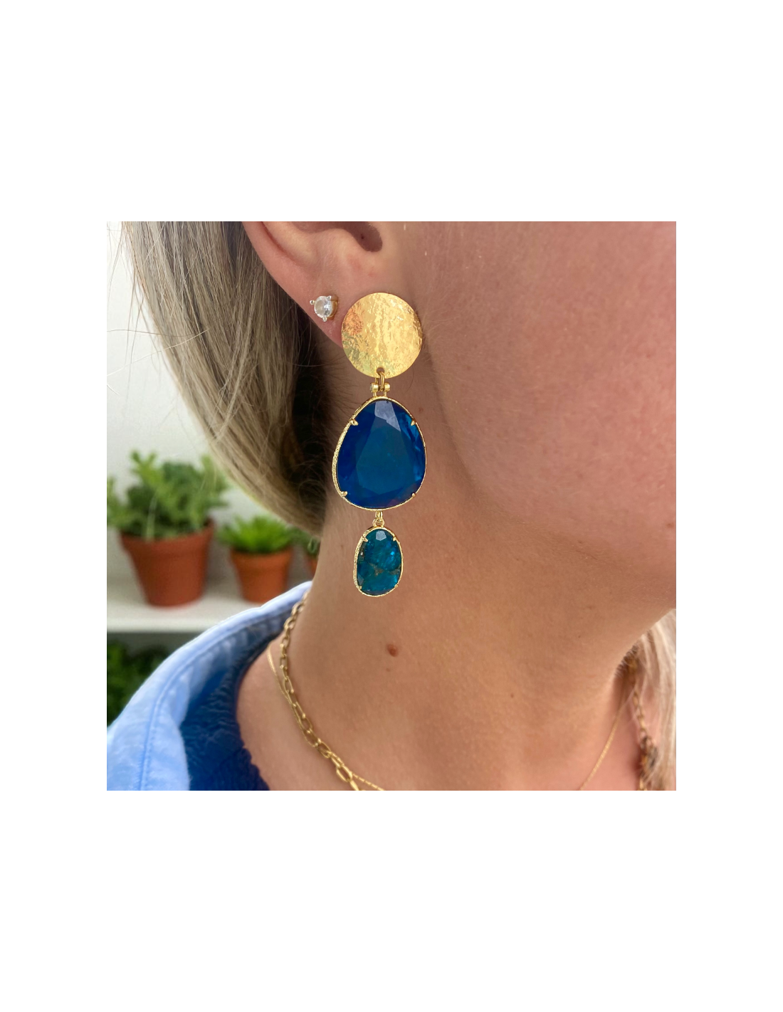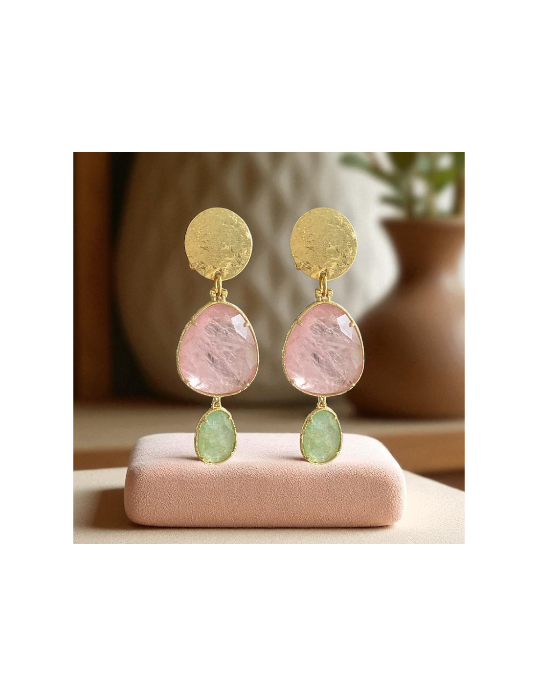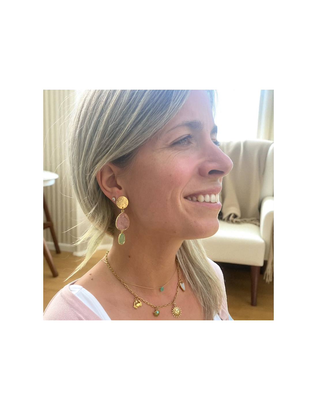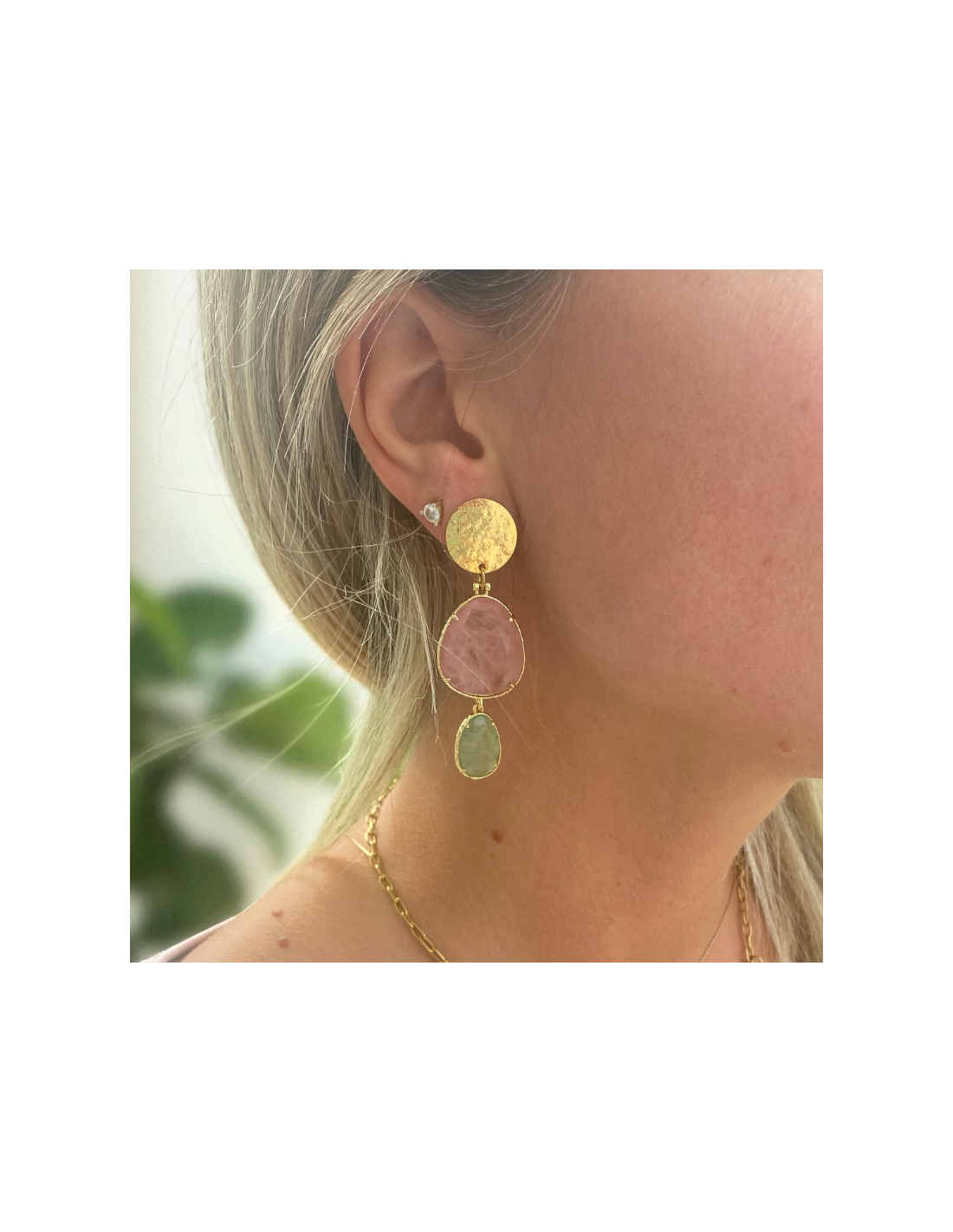 Boucles d'oreilles plaqué or, pierres sertie Lapis Lazuli ou Quartz rose