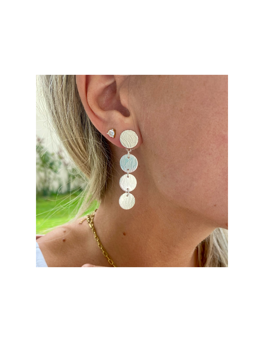 Suite de pièces rondes travaillées au laminoir avec impression de feuilles, création en argent 925.