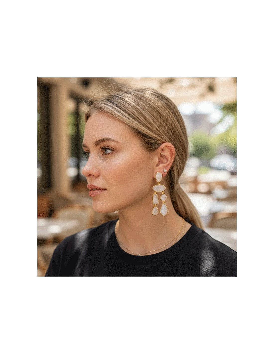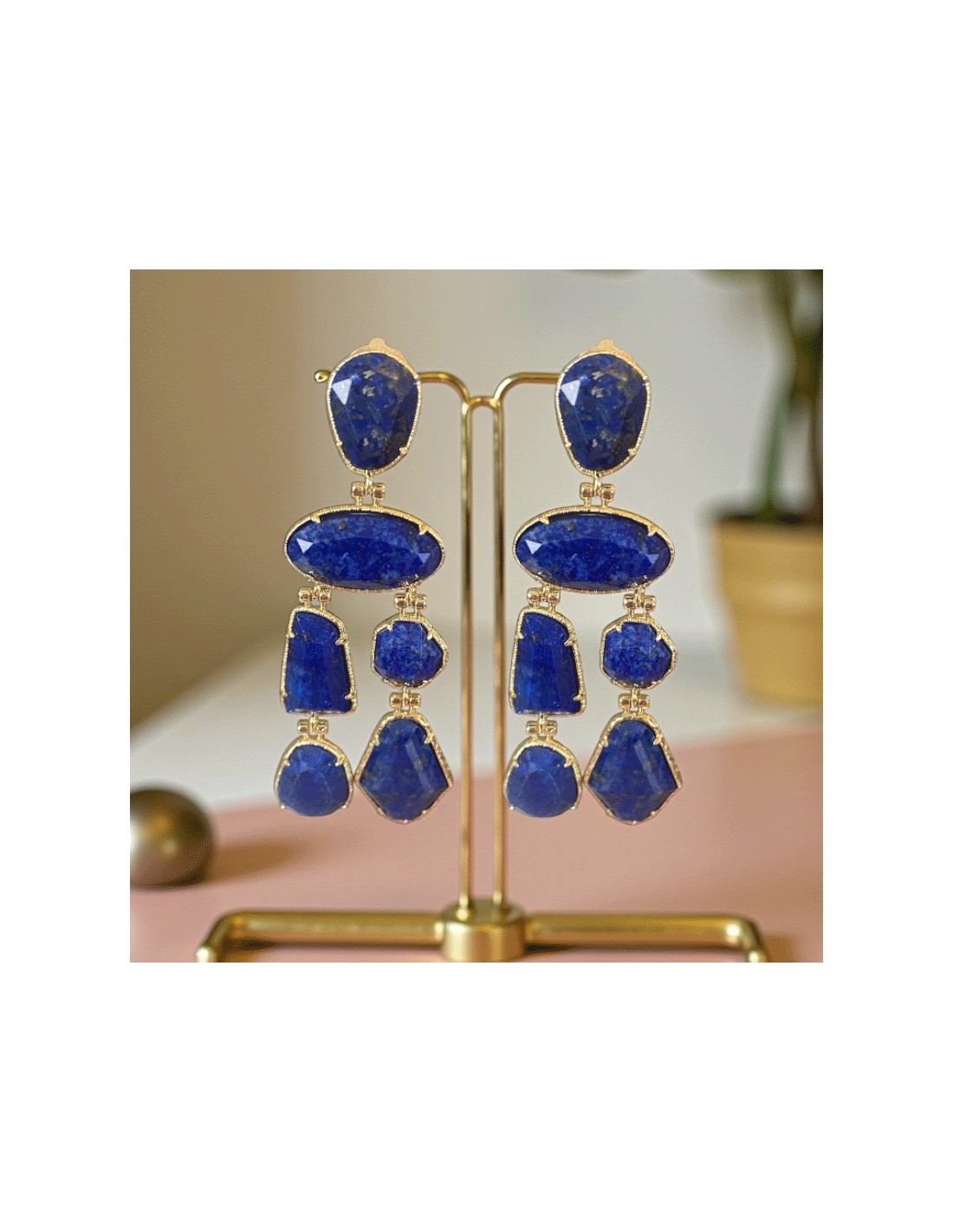 Apportez une touche d'élégance à votre look avec ces somptueuses boucles d'oreilles à clips pendantes ornées de pierres en Lapis-Lazuli ou Pierre de Lune