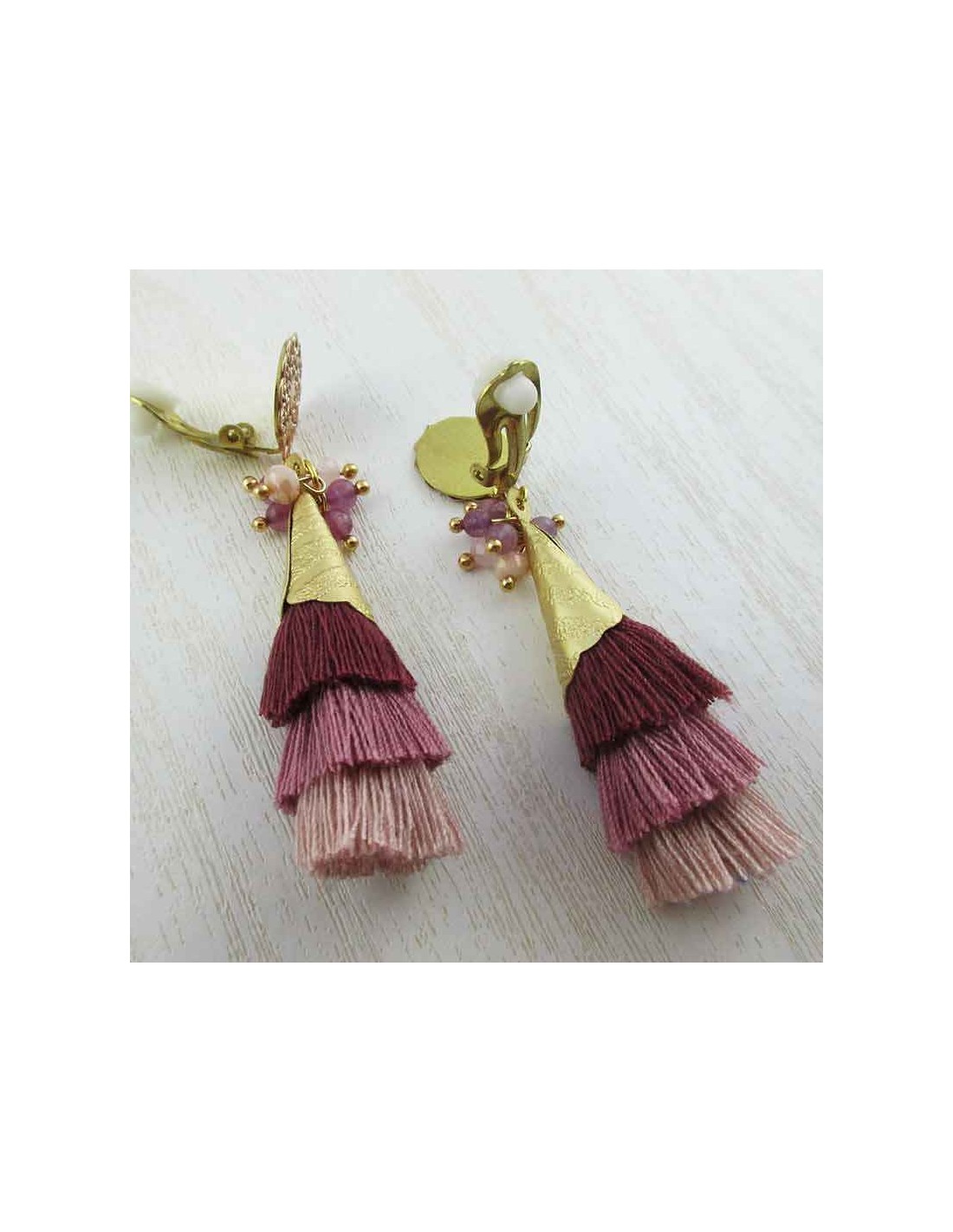 Boucles d'oreilles clips pompons rose