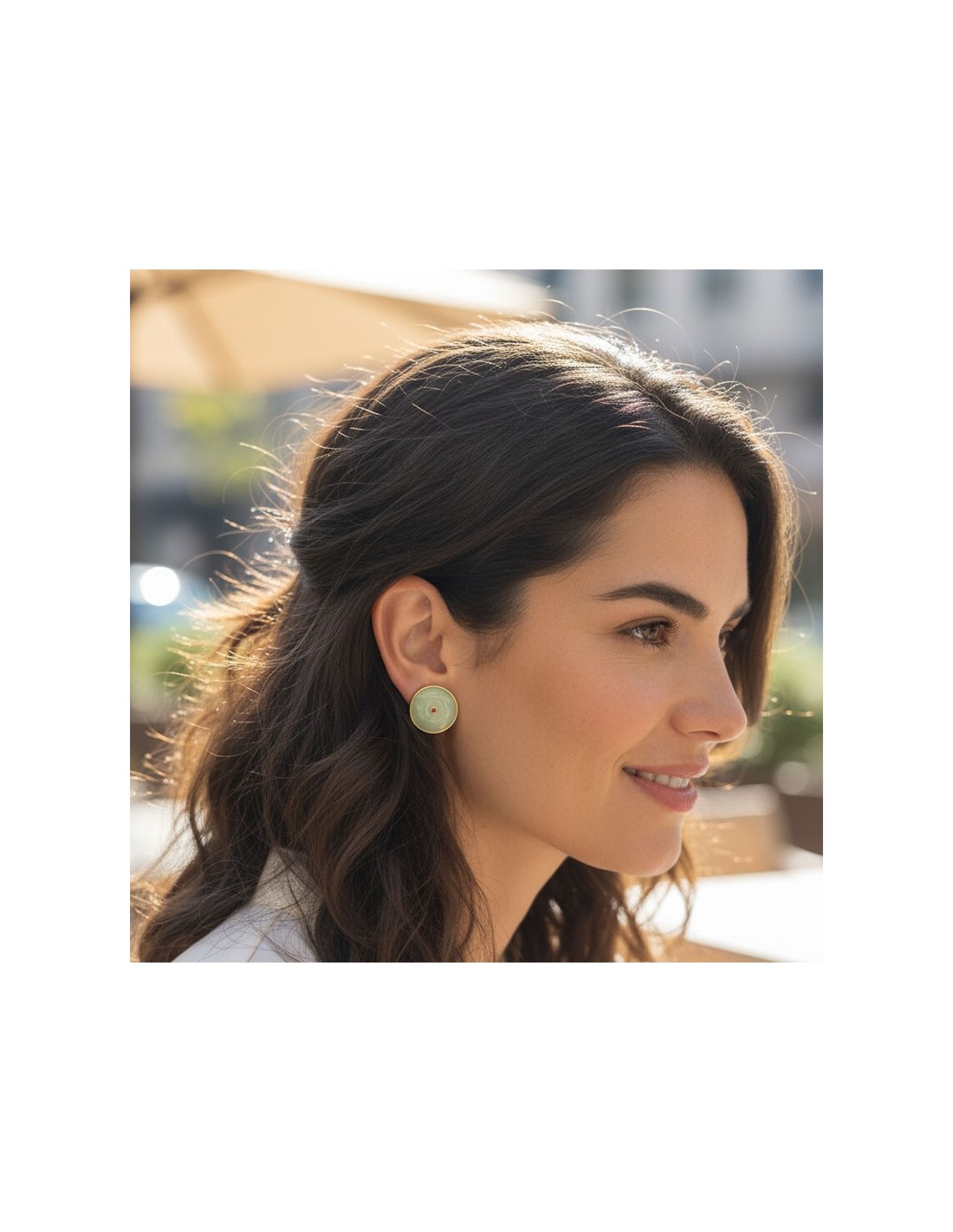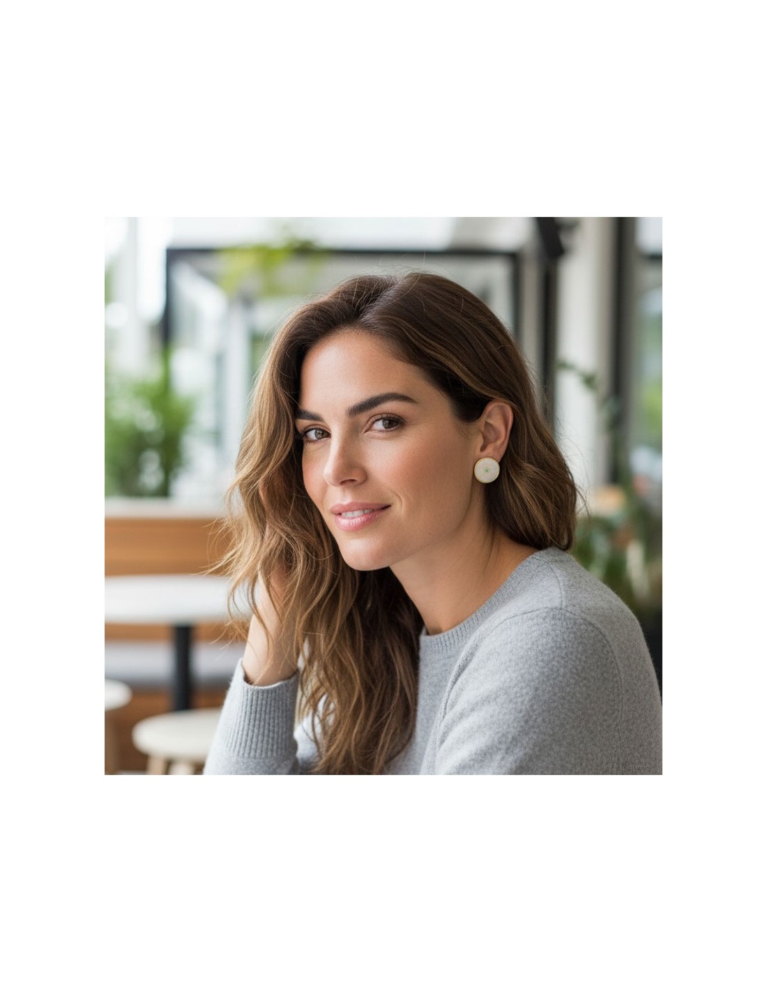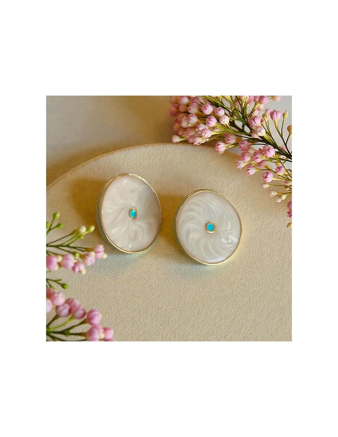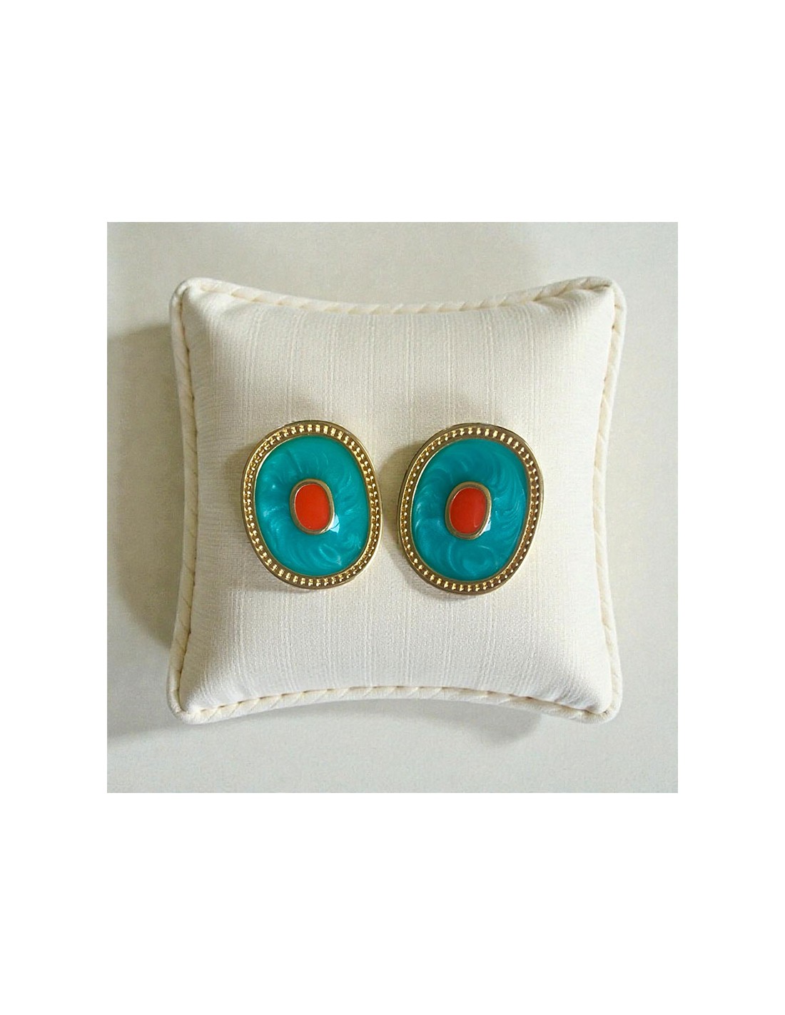 Ces boucles d'oreilles clips pour femme sont conçues pour apporter une touche de couleur à vos tenues. Ces boucles d'oreilles clips se composent d'un médaillon ovale au ton "lilas et vert" "turquoise et orange" ou "amande et orange", ou d'un médaillon rond "vert amande, orange" ou "beige rosé, turquoise".
